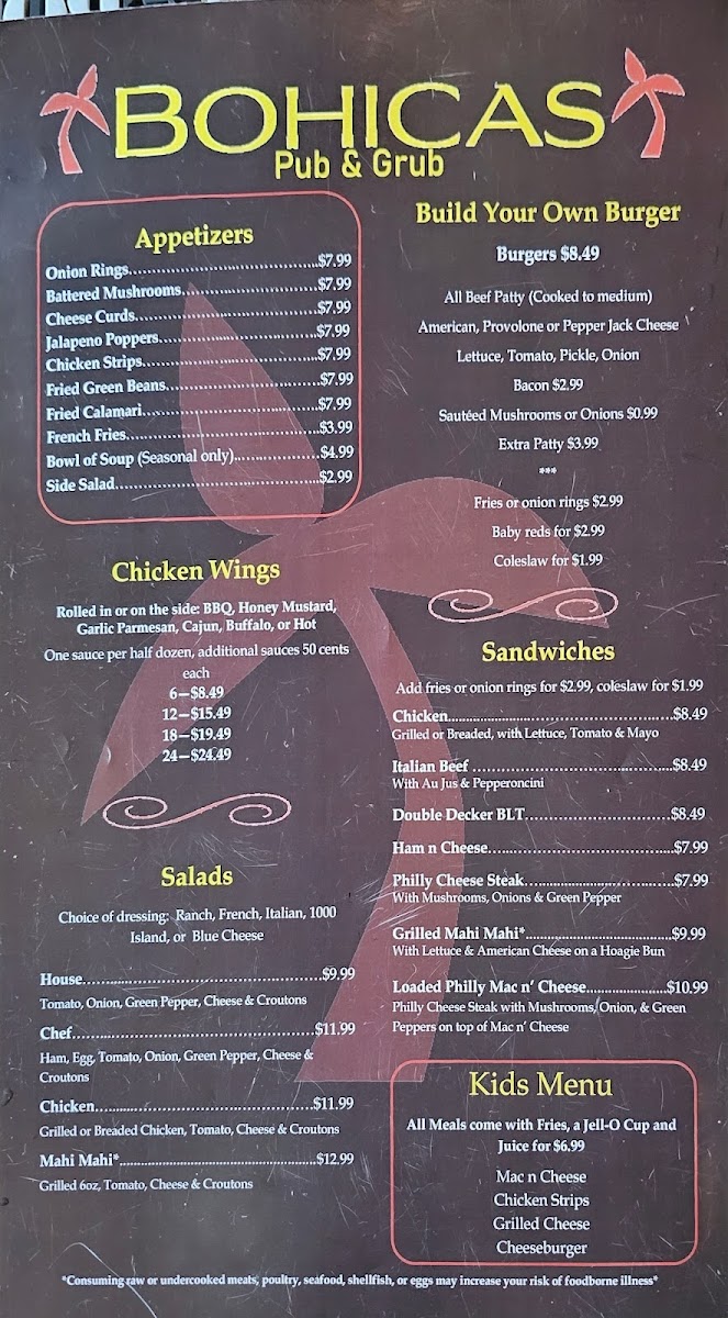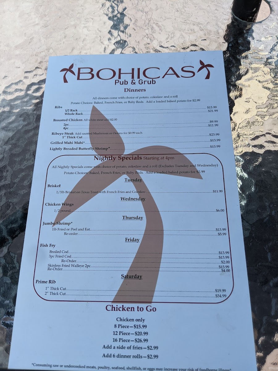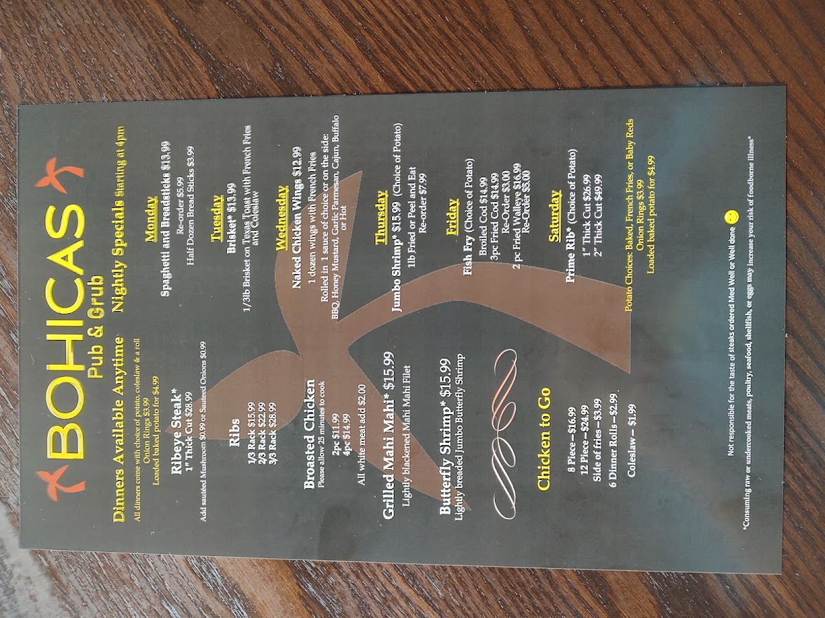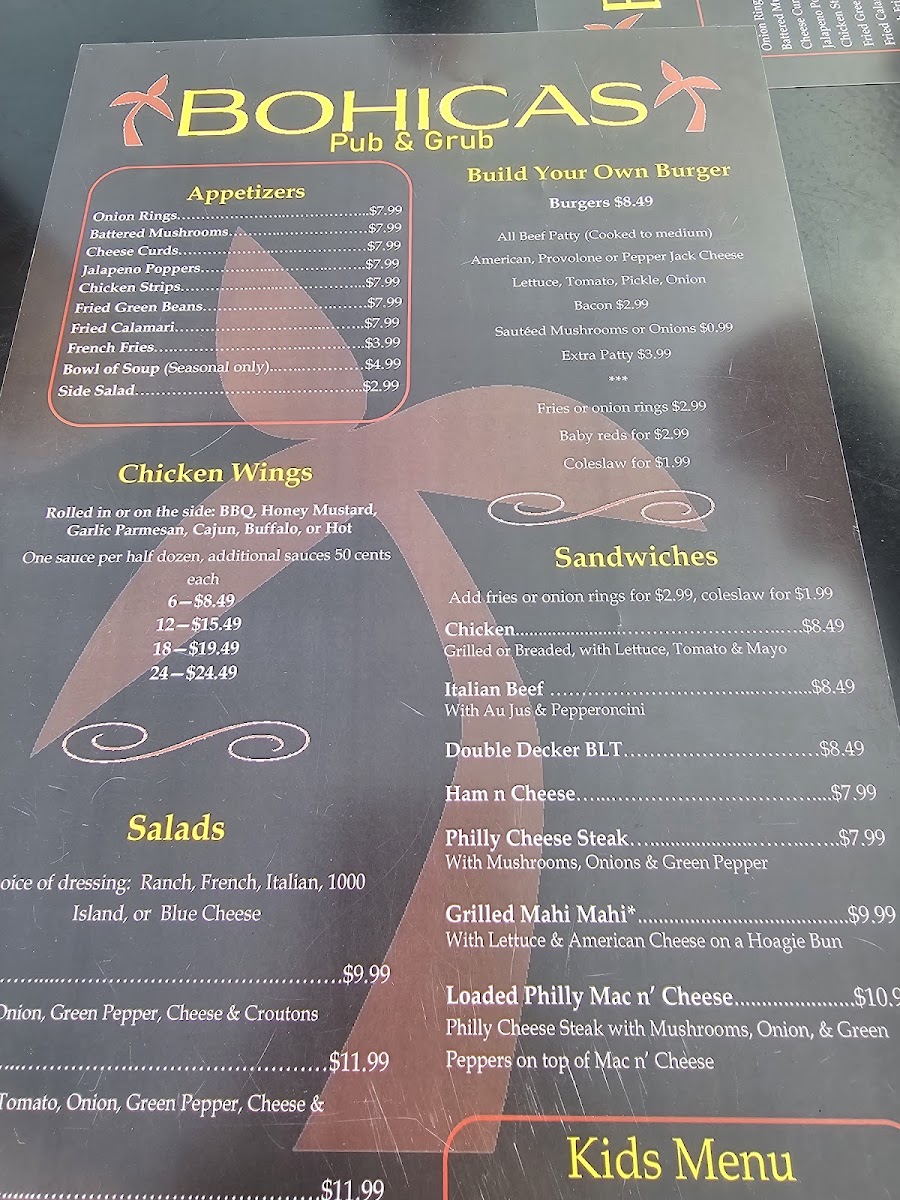 There’s a laid-back charm that makes Bohicas Pub And Grub Menu feel like the kind of spot you could spend hours without even realizing it. Tucked along 202 S Main St in Necedah, this cozy pub brings together comfort food and friendly energy in equal measure. You’ll find all the pub classics you crave - juicy burgers stacked tall, crispy wings with sauces that range from mild to daring, and hearty sandwiches built to satisfy any appetite. The fries come golden and crisp, perfect alongside a cold drink from the bar. There’s something about the atmosphere here that invites you to unwind, whether you’re catching a game, meeting friends, or just craving a casual bite after work. It’s the kind of menu that feels familiar yet full of little surprises that keep you coming back for more.